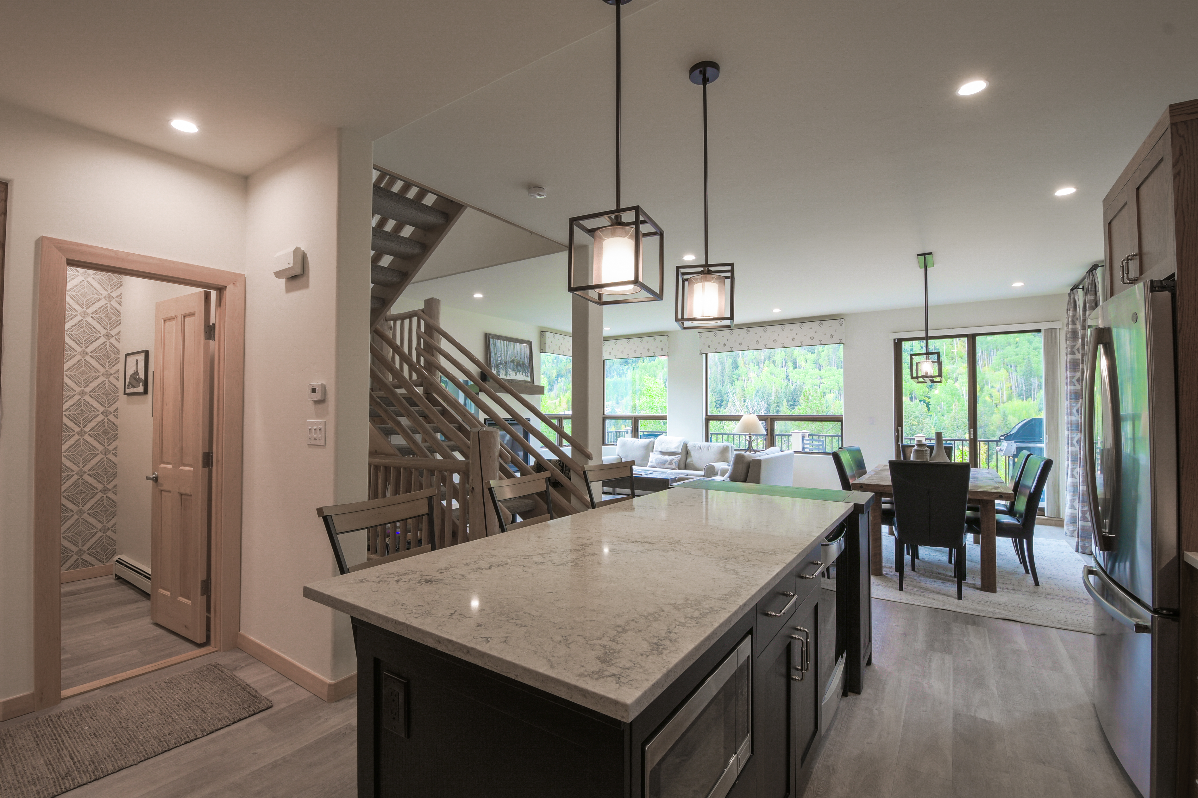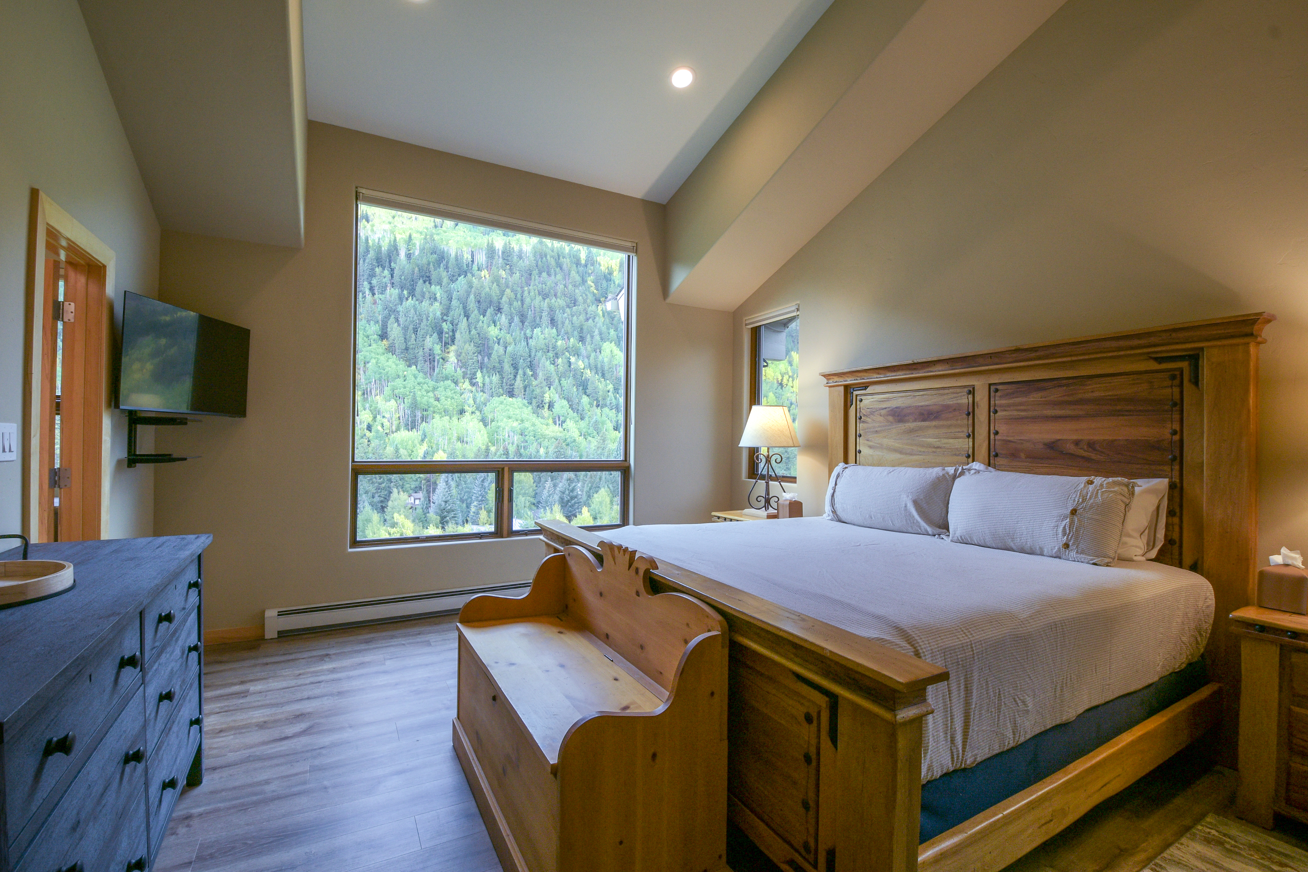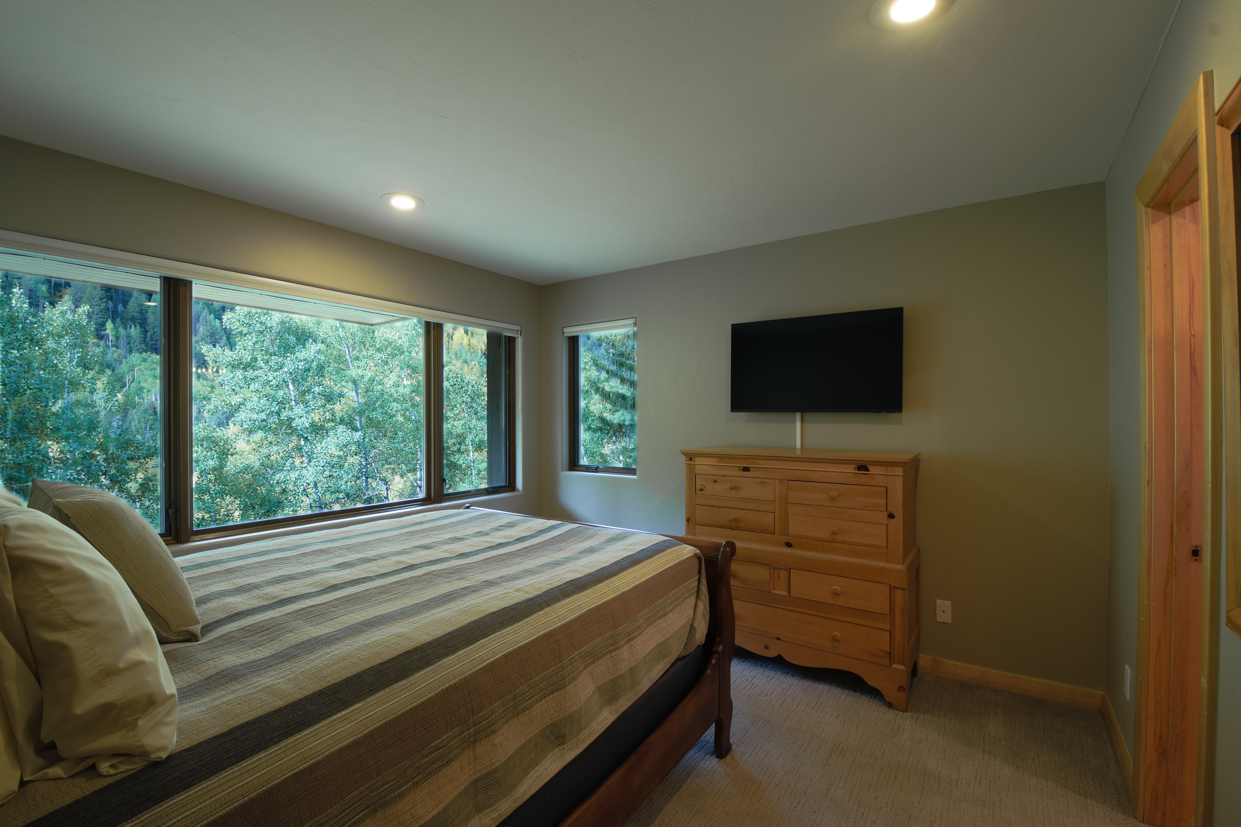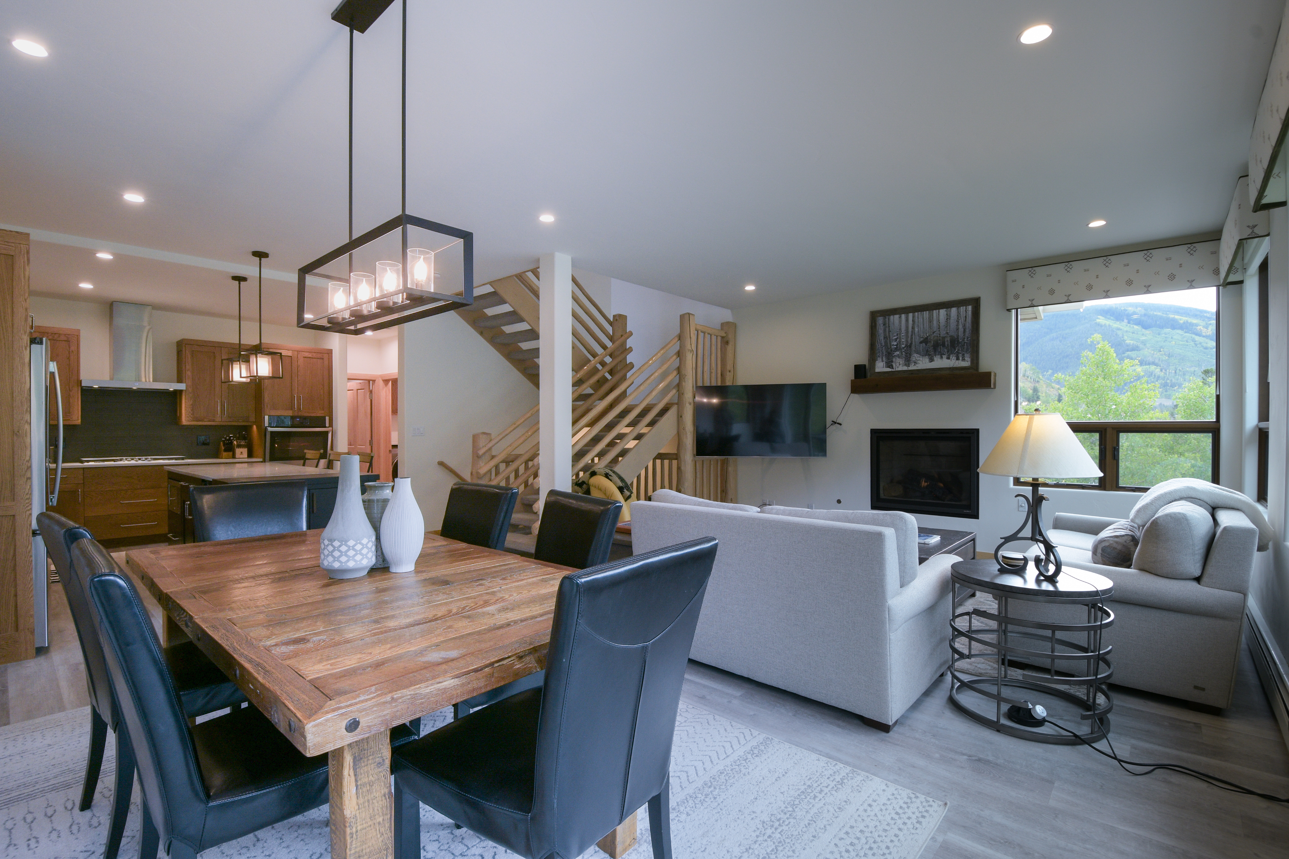 This stunning 4 bedroom/4.5 bathroom home is tucked into the hillside of East Vail. With south-facing mountain views you dream about and an open floor plan with a wall of windows, the mountains look close enough to touch. Tasteful furnishings and a gas fireplace complete the space made for comfort and relaxation. A large well stocked kitchen will please the discerning chef of the family. There's a large dining table for 6 and also 3 seats at the kitchen island. The primary suite is on it's own floor creating a private oasis. The main living floor level also has a queen bedroom ensuite, large laundry room, and a powder room. A lower level has 2 more queen bedrooms, each with their own full bathroom. There is a 2 car heated attached garage with mudroom and the home is also on the Town of Vail's free shuttle route. This Vail destination has never been rented before Fall 2025 and is ready for your family & friends to enjoy!